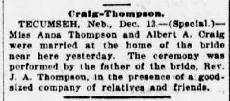 2010 Ellendale, North Dakota: "Ruby Alice Peek, daughter of John Oliver and Mary Alice (Thompson) Peek was born July 25, 1912 in Tecumseh, Nebraska. She was the youngest of five children. She moved to Ellendale with her family in 1927. She lived through difficult times in the Great Depression and the Dirty Thirties. She was united in marriage to Otto Gerling who was the blacksmith in Ellendale on January 24. 1941 in Ellendale." |
