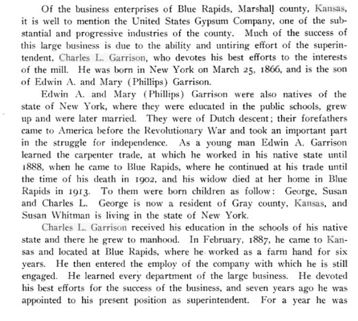 Charles L. Garrison and A. B. Garrison are both mentioned in the History of Marshall County 1917.