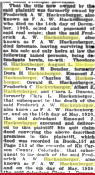 F. C. L. Hackenberger married Ora Estella Borton on August 6, 1899, recorded in Kit Carson County.