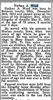 Nathan 1854-1930 # 58935828 and Mary C. (Stuart) Wood 1856-1914 # 58935827 are buried in Custer County, Nebraska. MIt says she died in Arcadia, Valley County, Nebraska.