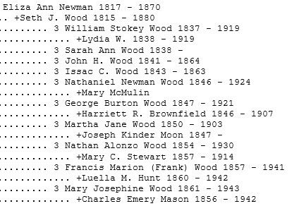 (Seth Wood 1815-1880 is buried in Warren County, Iowa # 65506858 - his first wife Eliza Ann Newman) Wood died in 1870.
