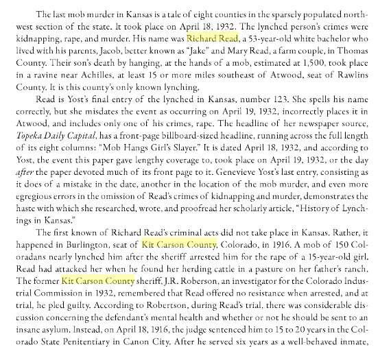 in lynching Read, she said, because in Kansas there