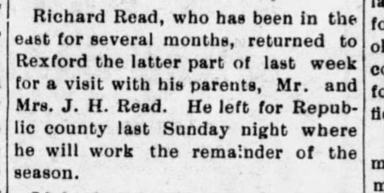 Richard was in Rexford Kansas, probably living with his parents.