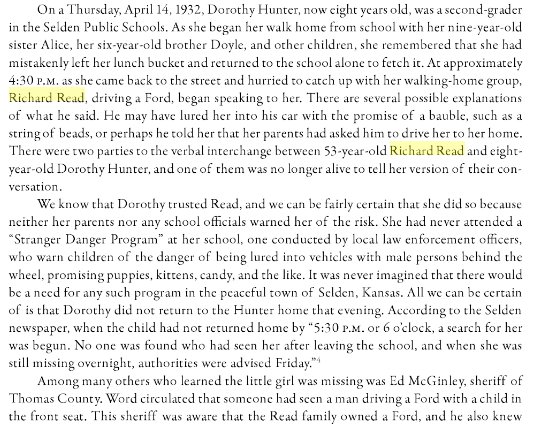 killed little Dorothy Hunter of Seldon, Kansas a few days