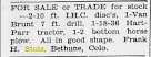 One daughter preceded him in death, passing away in infancy. He leaves to mourn his wife and four children: Mrs. Esther Schlichenmayer, Laird; Mrs. Blanche Beckstrom and William of Burlington; Henry of Bethune; three grandchildren, his mother, who lives at Wray; five brothers, Emil, of Vona; Otto, of Naponee, Neb.; Albert, of Loveland; Ernest, of Lincoln, Neb.; Paul, of Bethune; one sisters, Mrs. Alice Holter of Eads, and a host of friends."