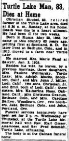 Christian Strobel 1863-1947 died in Turtle Lake, North Dakota, spouse Dorothea Dobler 1864-1922.