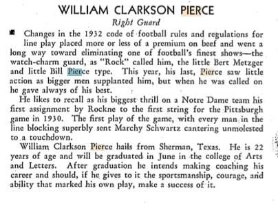 1933 Abilene "Bill Pierce, guard on Notre Dame's