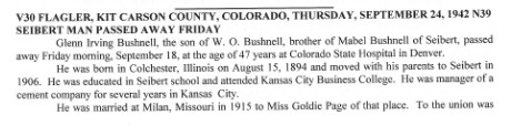 Age: 22, born in Milare, Missouri to Glenn and Goldie Bushnell,