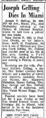 Joe Gelling, born March 22, 1883, died in Miami in June 1967.