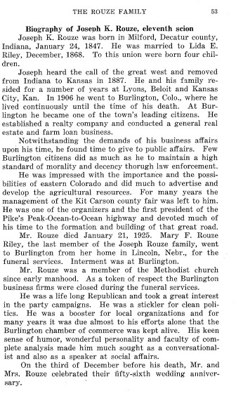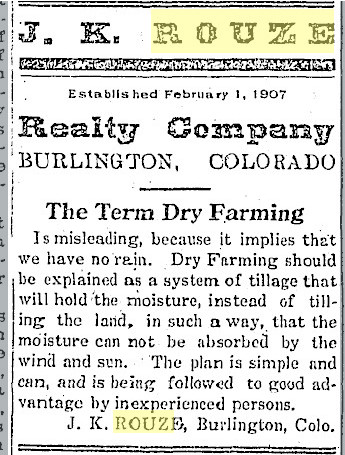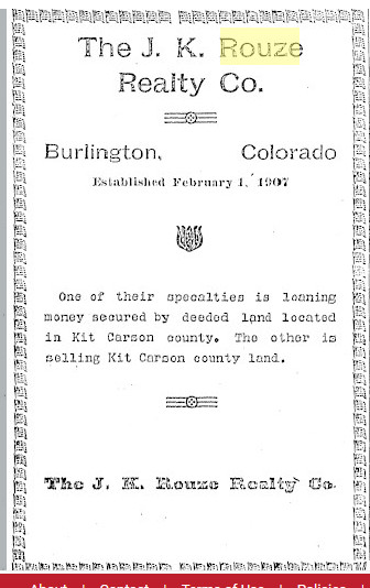 1910 Kit Carson County "J. K. Rouse is still confined to his room with a serious attack of asthma