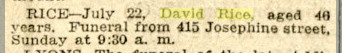 David Rice, 40, was issued a burial permit in Denver in 1904.