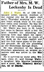 John Wafer was a son of the Emerald Isle, marrying Miss Elizabeth Early, having John in St. Louis. In 1876 they removed to Denver.