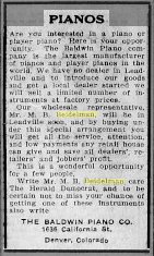 He will then return to Aspen to attend to business for a popular music concern, the Denver Music company."