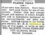 1906 Aspen, Colorado "The Elks have purchased a beautiful Weber Pianola of Mr. Beidleman,