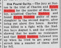 Ralph Madden 1878-1942 is buried in Norton # 49759666, with Nellie 1883 -.. (Nellie is living alone in 1942 and 1943 Norton.)