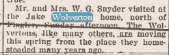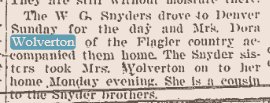 October 19, 1912 Beloit "Hiram Wolverton returned home Wednesday, from Flagler, Colorado. "