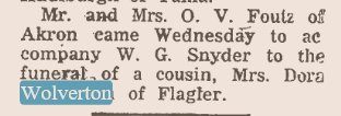 There's a stone in the Flagler cemetery - William Wolverton 1881-1940 # 24558784.