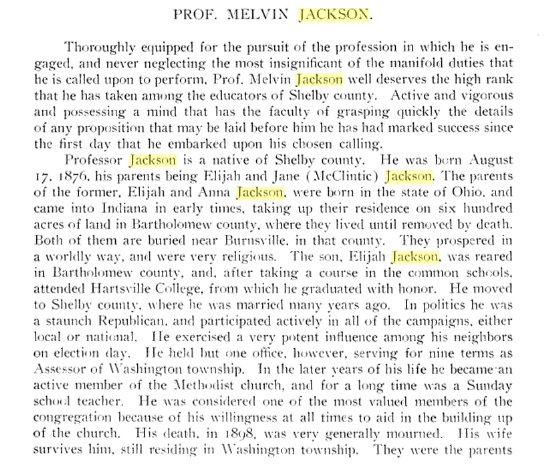 1907 Shelbyville "Herschel Jackson, of this city, received a card