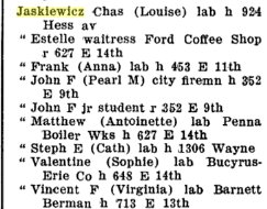 The 1940 directory has Mrs. Hedwig Jaskiewicz working at the Lawrence Hotel, living at 519 1/2 E. 9th.