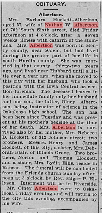 Nathan E. and Mary M. (Hockett) Albertson , 8 South 42 West