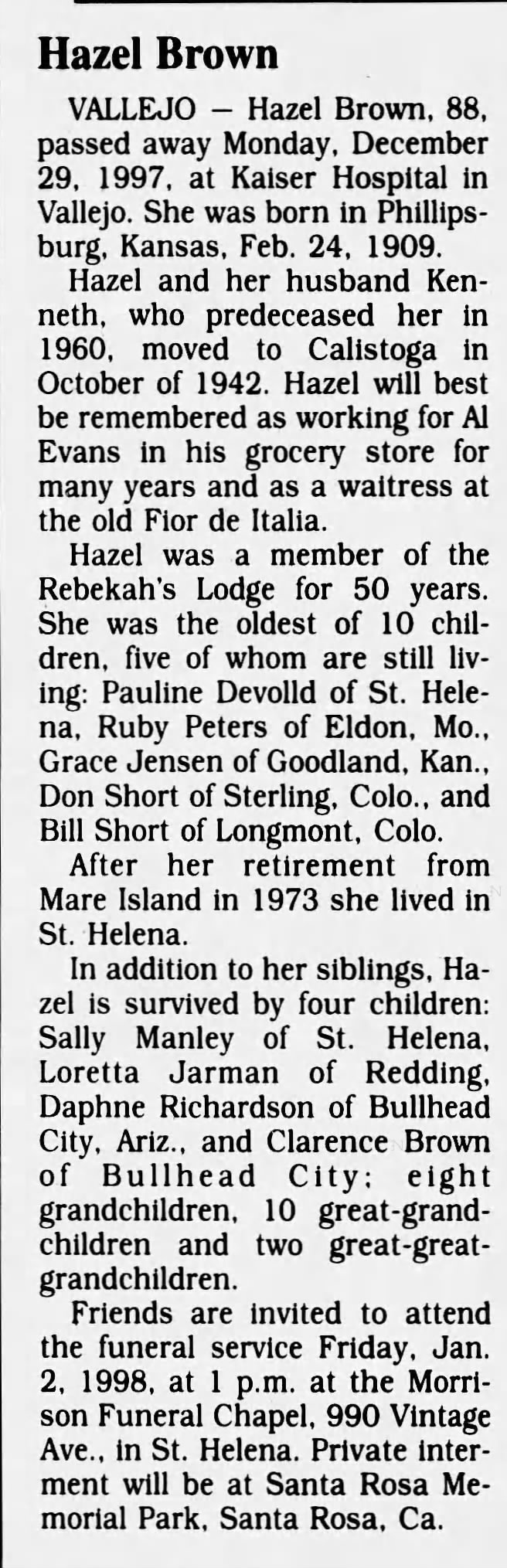 She is survived by four children, Tom Hansen of Modesto, Calif.,