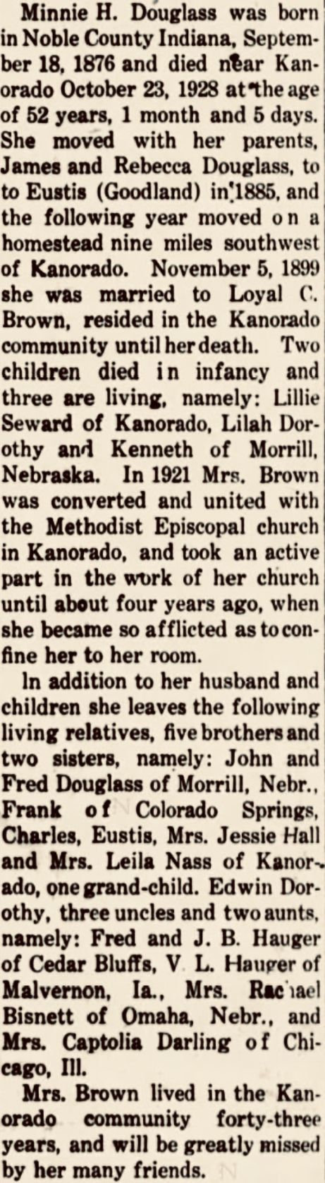 December 1928 Kanorado "Mrs. C. R. Hall and family entertained at their home Christmas day, Mr. and Mrs.