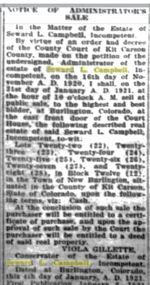 14 Apr 1892 in Kit Carson County, Colorado.