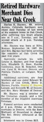 Meryl D. Haynes of Pueblo. Stanley C. Haynes of Lawson,