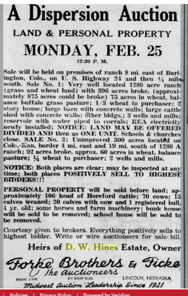 Bonnie Lou Hines, born 22 Dec 1937 at Burlington, Colorado, died
