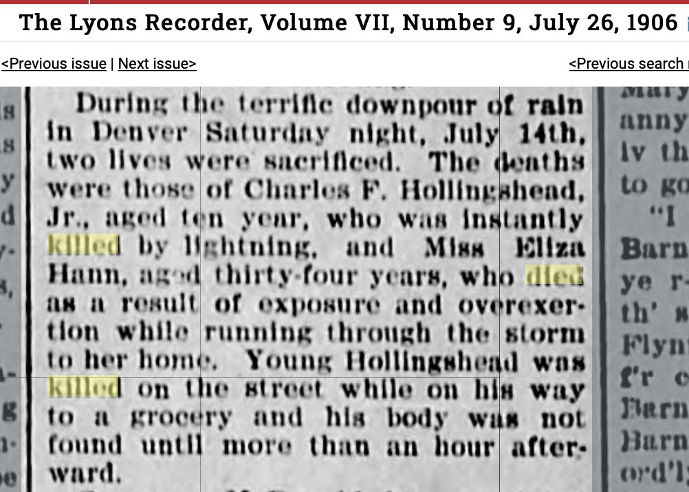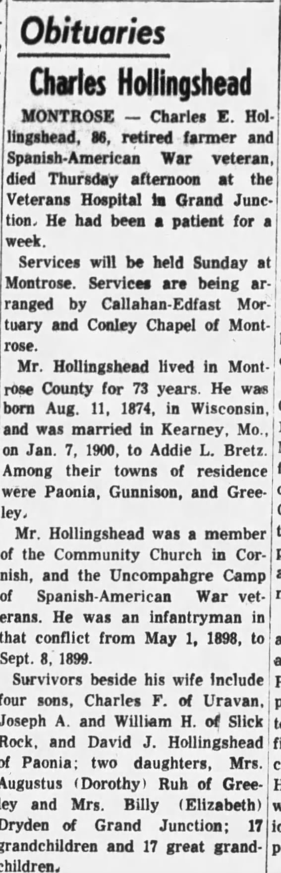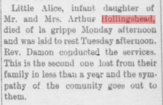January 1899 Goodland "Brakeman Jim Hollingshead has quit and has gone to Denver."