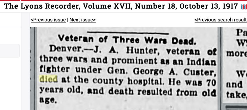 November 17, 1904 Greeley "John N. Hunter died in his home at Grand Valley,