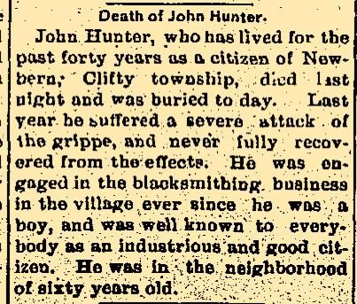 He was a member in good standing of the G. A. R. His son, John W. Hunter of this city,