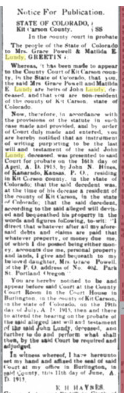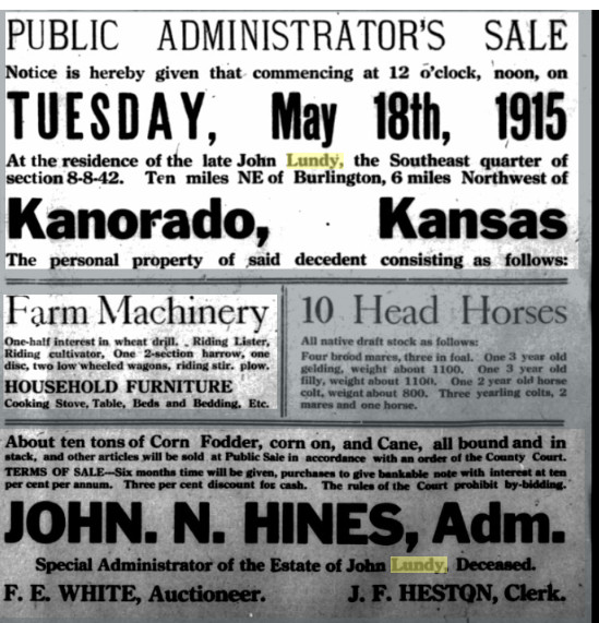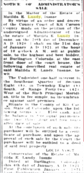 Kit Carson County, Colorado, John S. Lundy is farming, born March 1847 in Iowa, married 18 years to