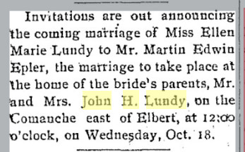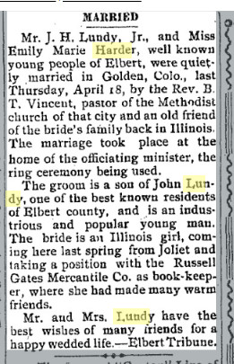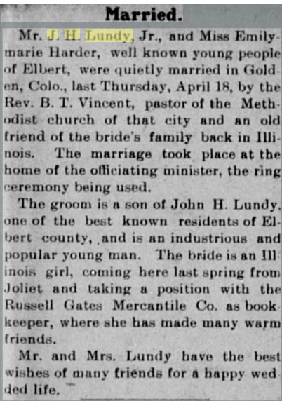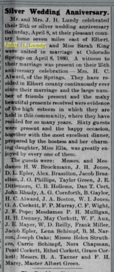 married to John H. Lundy on April 8, 1880, in Colorado Springs. Shortly thereafter,