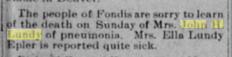 "The, died of Mrs. Sarah Jane Lundy at her home six miles east of Elbert, on Sunday,