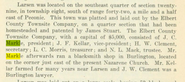 "J.C. Markle was born in Wayne Co., Ohio in 1839, and when he was two years old his
