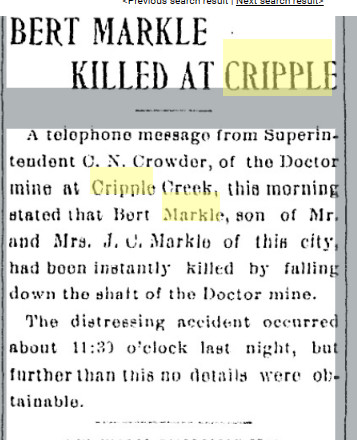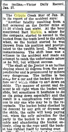 , died 25 JAN 1900 Cripple Creek, Teller, Colorado,