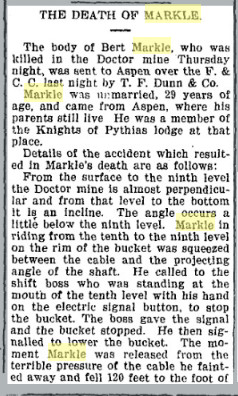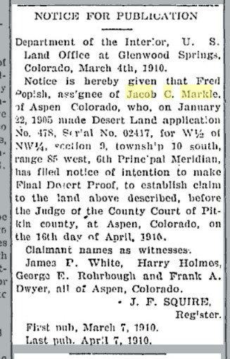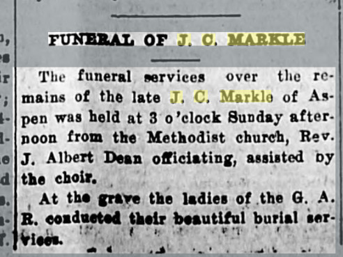 In 1895 J.C. Markle was junior vice-commander of the Aspen G.A.R.