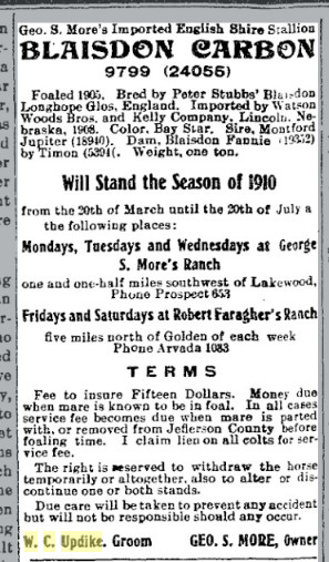 homesteading on the Eastern Slope near Golden, Colo., where they lived until 1917.