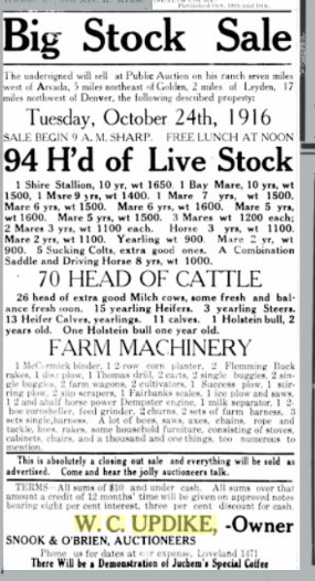 October 1912 Ralston (Jefferson County, Colorado) items "Mr. and Mrs. Will Updike departed the first