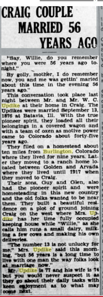 October 28, 1936 "Mrs. Ella Updike, a resident of Craig for the past 20 years,