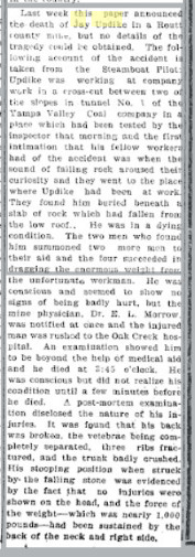 machine, when a huge piece of coal or rock fell, crushing Updike so badly that he died a few hours