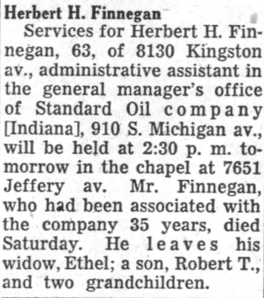Herbert Henry Homer Finnegan registered for WWI in Oak Park, Illinois, born January 22, 1895 in Aspen, COlorado, single.