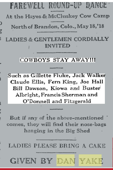 October 1913 Wray Colorado " Mrs. Yake of Sharon Springs,