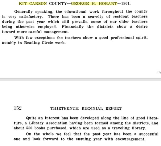 1899 "G. H. Hobart, Superintendent Kit Carson County —