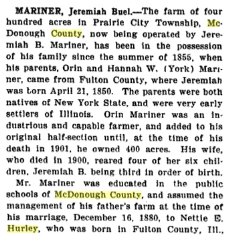 In 1870 Fulton County, William is farming, 36, with Joanna 32, Matilda 14, Mary 12, Nettie 10, and Helen 8, all born in Illinois.