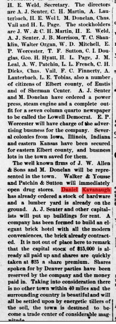 Daniel Kavanaugh was the Kit Carson County Clerk in 1890-1891.
