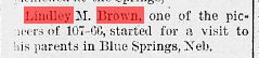 married Annie M. Brown, daughter of Samuel Brown, on May 2, 1890 in Gage County,