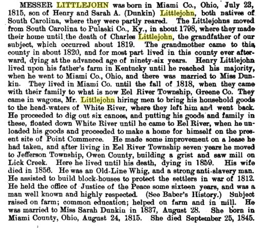 He is the son of Messer Littlejohn and Sarah "Sally" Duncan>