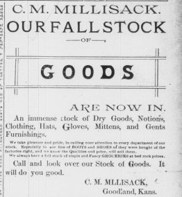 1899 Goodland "C. M. Millisack of this city has purchased the